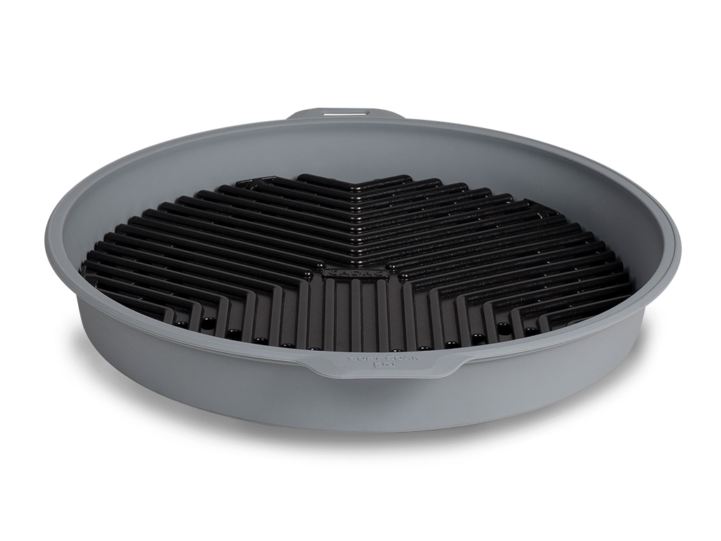 Handig, makkelijk in te pakken, Flexibel, Siliconenrubber, Schoonmaakkom/container. Het is belangrijk om de GreenGrill in warm zeepsop in de Soft Soak te laten weken voor een perfecte eenvoudige reiniging. Dit zorgt voor maximale hygiëne en beschermt de antiaanbakeigenschappen van de grill.