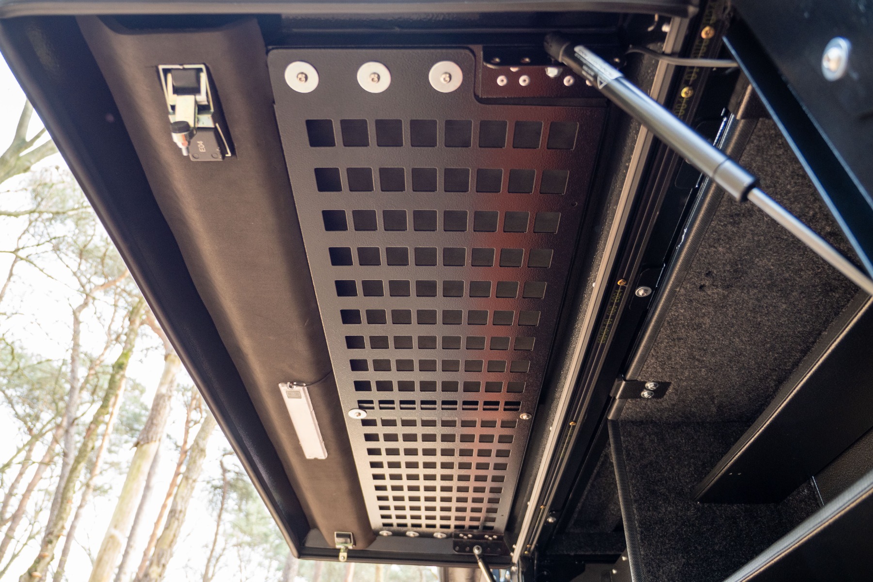 The Bushtech Bush Cabin Molly Panels Side Doors offer the perfect solution for maximizing storage space in your camper. These durable and practical aluminium panels can be easily mounted on the inside of the side doors, creating additional versatile storage space and mounting options for all your gear. In addition, the panels protect the side doors of your Bush Cabin from damaging from the inside.