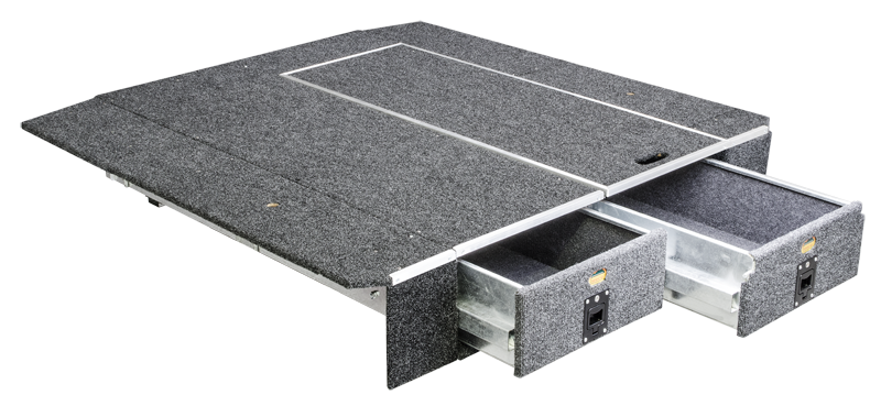 The drawers run on sealed roller bearings and are capable of carrying over 150kg per drawer. The drawers are carpeted inside and on top, have a carpeted face and are lockable.