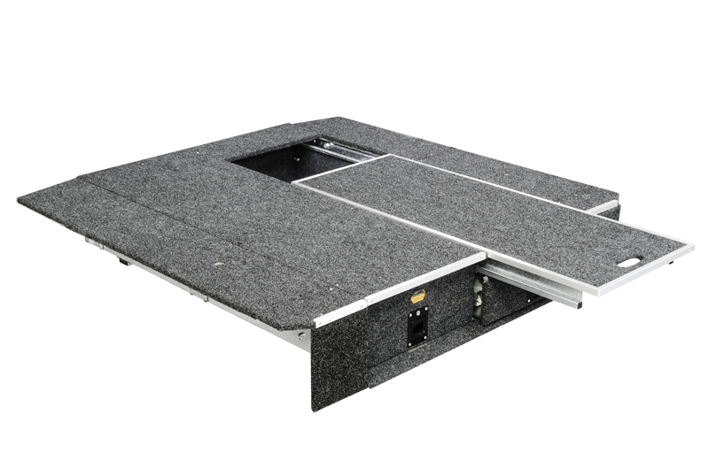 The drawers run on sealed roller bearings and are capable of carrying over 150kg per drawer. The drawers are carpeted inside and on top, have a carpeted face and are lockable.