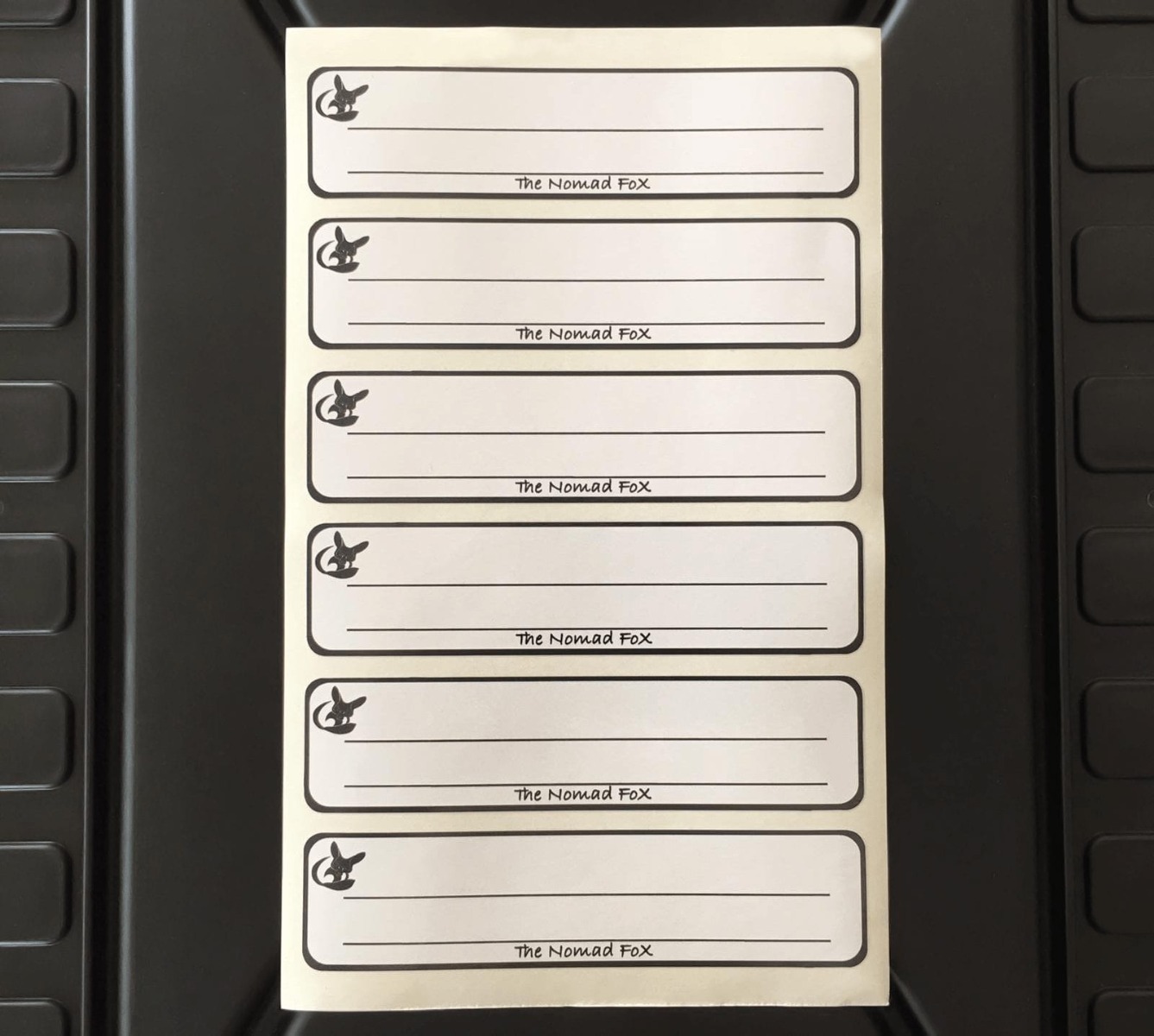 We have chosen to leave our labels blank so that you can identify the content as you wish and in your own language. They will perfectly withstand the outdoor conditions. Since they are made of vinyl, they will also peel off easily if you need to replace them with a different label. They are suitable for all types of boxes and cases, and on the Nomad Boxes they can be placed on either side or top, whichever side is most convenient for you.