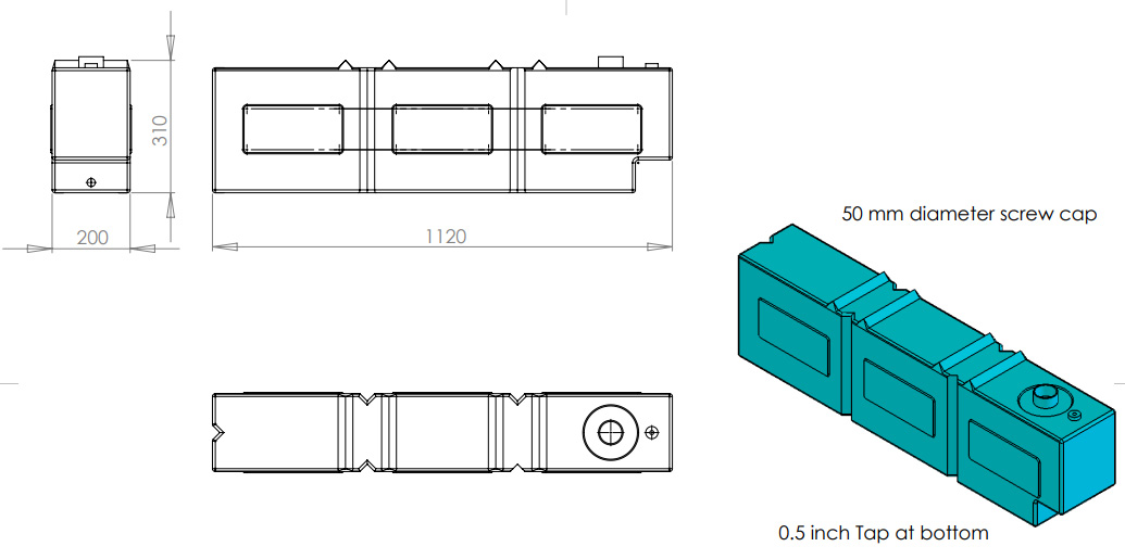 This 55-liter plastic water tank is the perfect solution for water storage in your Bushtech Bush Cabin. This water tank provides ample capacity to meet all your water needs while camping or overlanding. Whether you’re cooking, refreshing yourself, or need water for other purposes, this sturdy water tank ensures you always have water within easy reach. The hose set and tap, available separately in our webshop, are specially designed to perfectly connect with both the water tank and the Bushtech Bush Cabin, providing easy installation and convenient use. These components make accessing water efficient and hassle-free whenever you need it. This water tank is an essential accessory for any adventurer using the Bushtech Bush Cabin and looking for a reliable and efficient water storage solution.