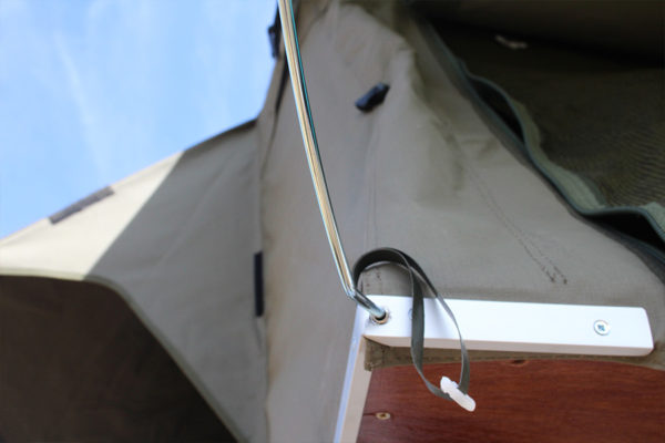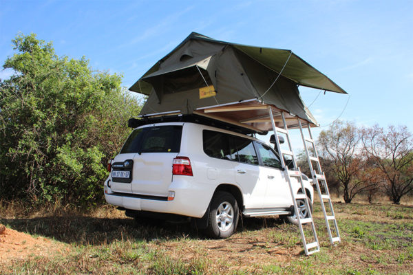 This rooftop tent is set up in minutes. Simply remove the protective cover, extend one of the ladders, and use it to unfold the tent. Adjust the ladders to the correct height and use the provided rods to tension the flysheet, and you’re all set.