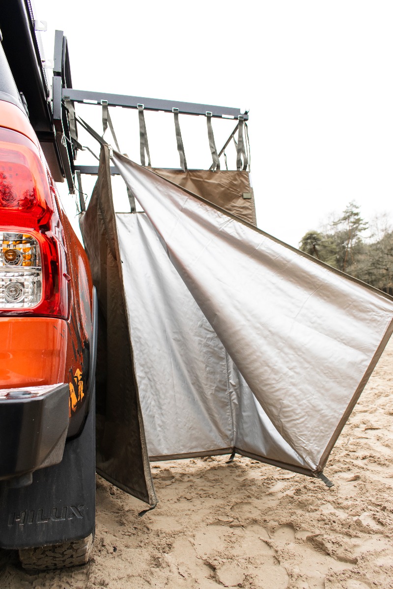 Since not all vehicles are the same height and Quick Pitch still wants to provide privacy for people of all heights, they have equipped the shower curtain with adjustable straps. This also allows you to easily switch heights for different purposes.