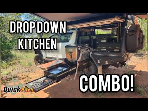 Developed in South Africa, the Quick Pitch Drop Down Kitchen Combo is the perfect solution specifically for overlanders with a flat tray. This innovative product combines a drop-down fridge slide and a mini kitchen, providing a compact and versatile setup for your overlanding adventures.