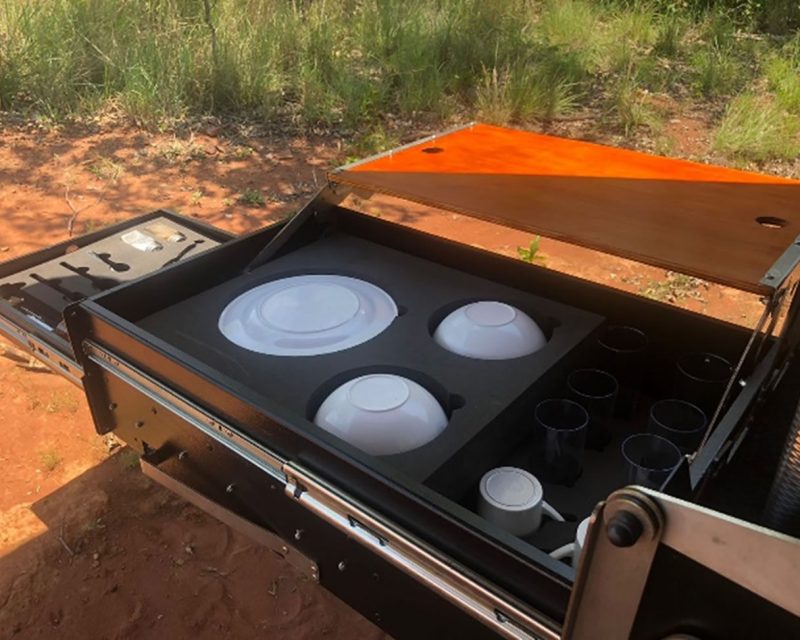 This Quick Pitch Drop Down Kitchen Combo is proudly designed and produced in South Africa. Here they only make use of the highest quality aluminum and stainless steel. Meaning this kitchen combo is built to withstand rugged outdoor conditions. The heavy-duty sliders ensure stability and durability, making it a reliable companion on your overlanding journeys.