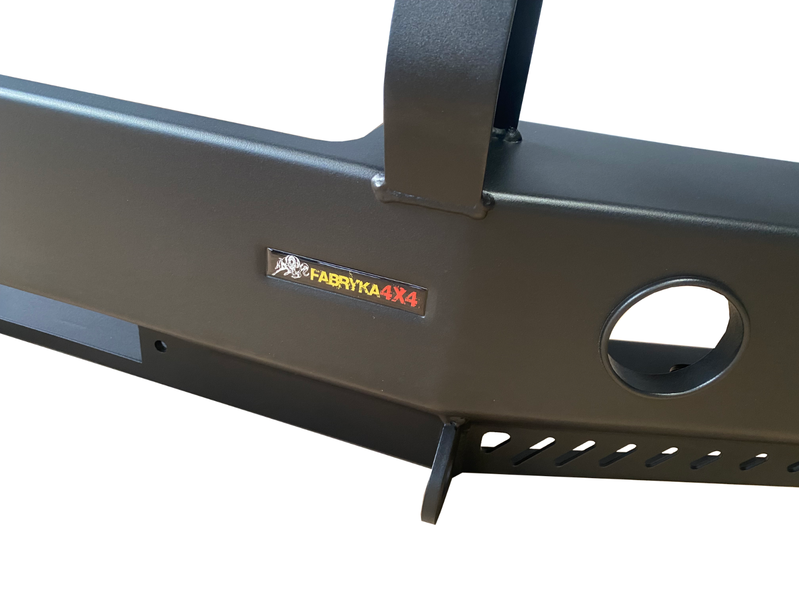 De bumper wordt geproduceerd uit 4 mm dikke staalplaat met behulp van Lasersnijders en CNC kantbanken. De lierplaat en bevestigingsbeugels waarmee de bumper aan het chassis worden gebout worden van 5 mm dikke staalplaat gemaakt en stevig in de bumper gelast, om optimale sterkte te garanderen. Tenslotte ondergaat de bumper een grondige anti-roest behandeling, bestaande uit een zinkpoederprimer en poedercoating, waardoor de bumper een mooie afwerking krijgt.