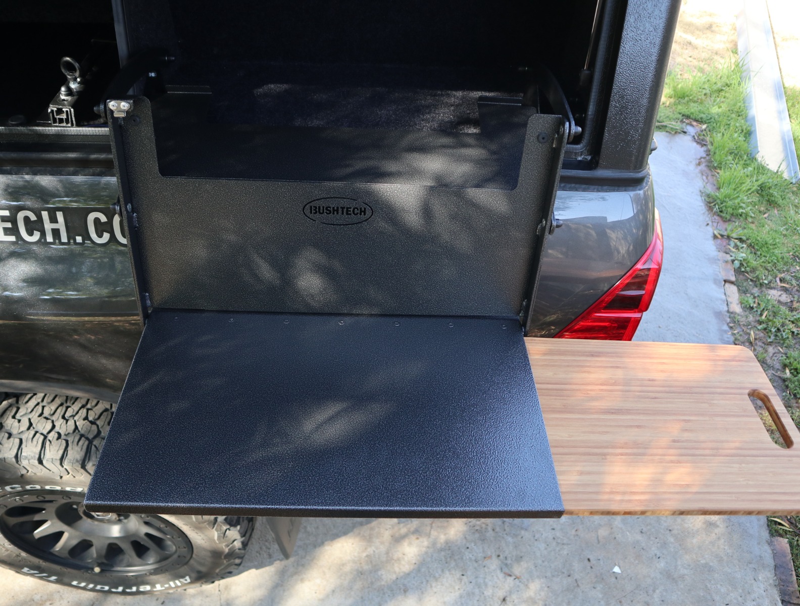 The Drop Down Table fits the Cupboard Type 2, which is suitable for the Toyota Hi Lux Revo DC+XC / Ford Ranger T6 DC+XC / Nissan Navara 2017-2021 DC. Please note that the Drop Down Table is only fitting the left hand side of the canopy.