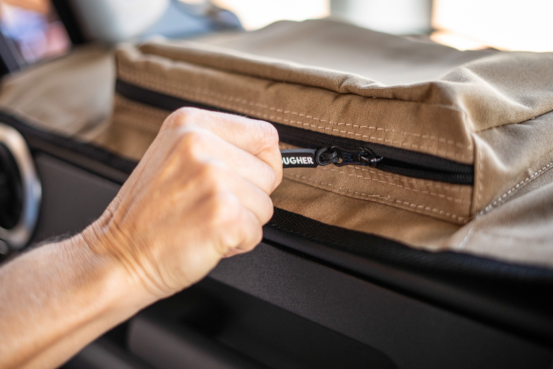 The cover protects your car interior from scratches and sun damage and is available in Charcoal and Light Khaki.
