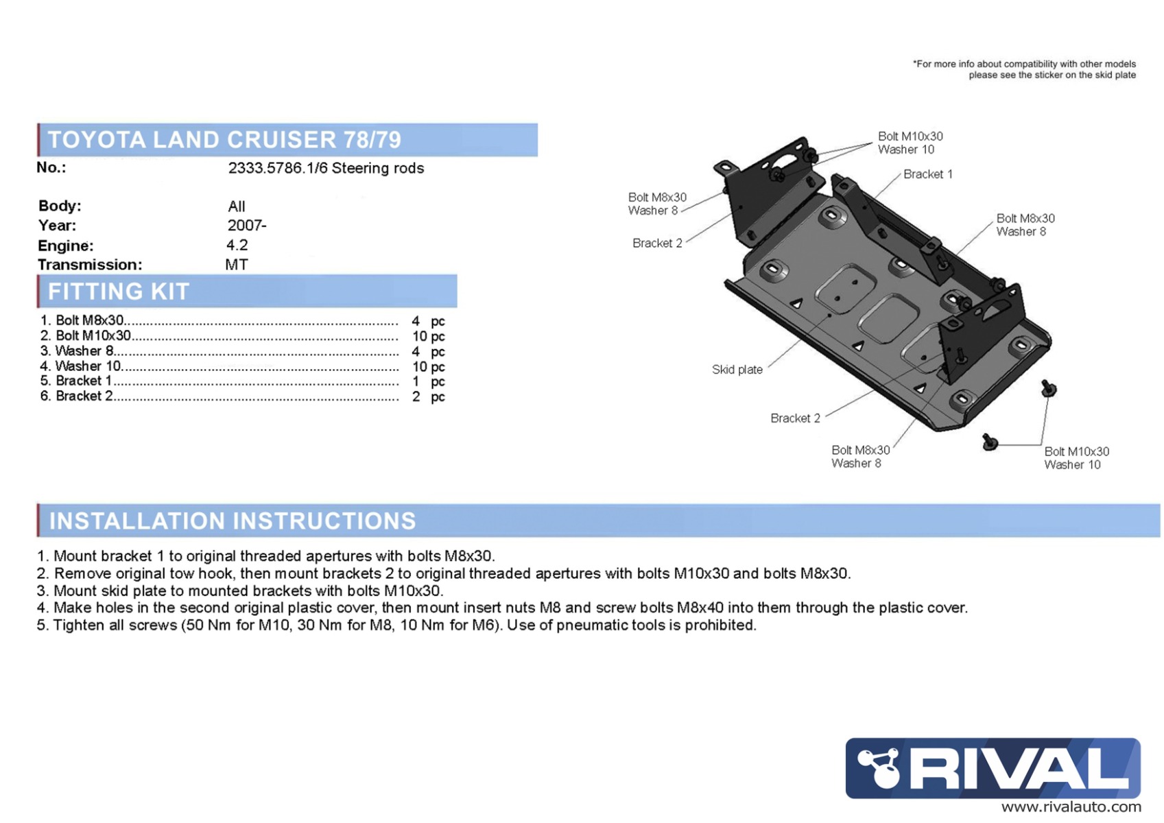 RIVAL Skidplate Steering Rods Toyota Land Cruiser 78/79 6mm aluminium